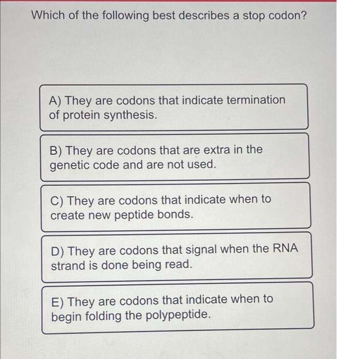 Solved Which Of The Following Best Describes A Stop Codon Chegg Com