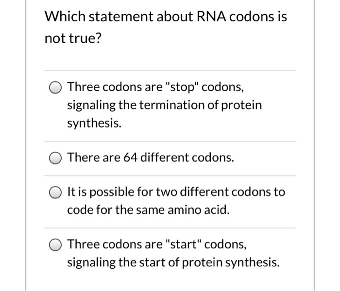 Solved Select All Statements That Describe Stop Codons 43 Chegg Com